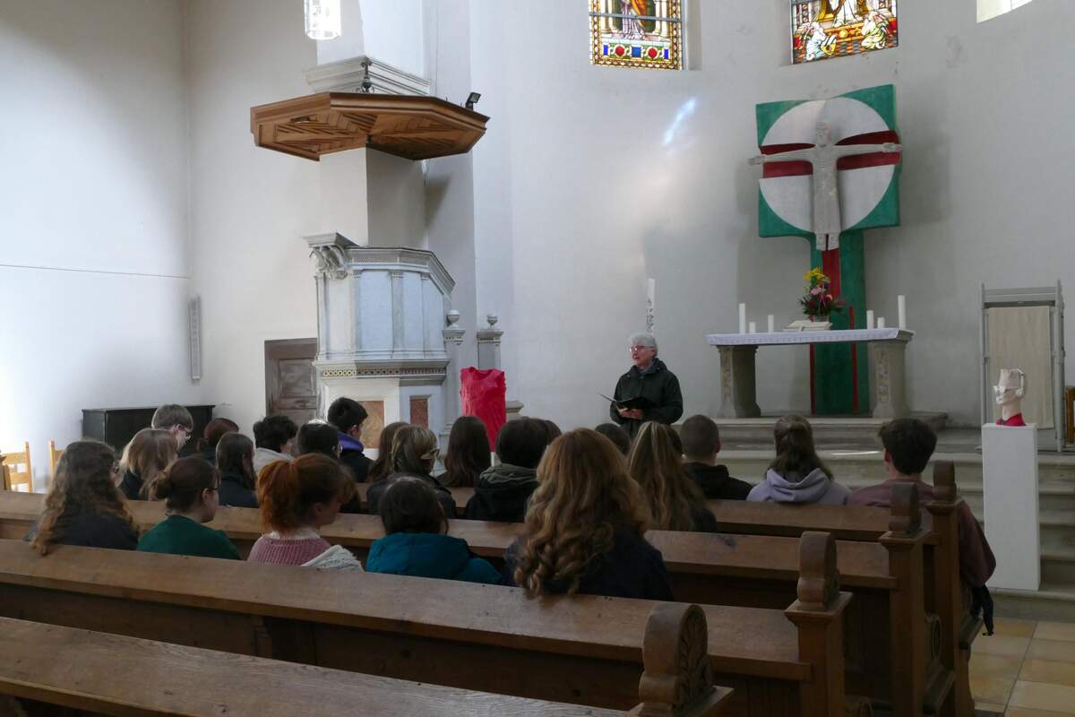 Anlässlich der bevorstehenden Abiturprüfungen fand am 18.04.2024 eine gemeinsame Andacht für alle Schülerinnen und Schüler der 12. Jahrgangsstufe in der Erlöserkirche statt. Gestaltet wurde die Andacht durch Pfarrerin Frau Venter.
