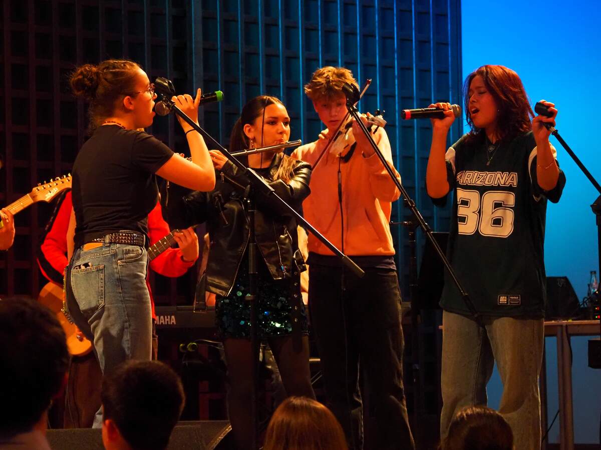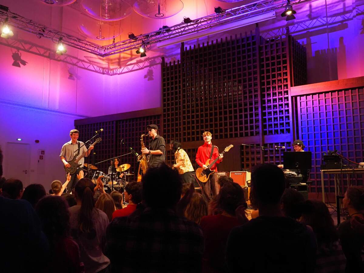 die Schülerinnen und Schülern wie Konzertgäste zum Mitklatschen, -tanzen und