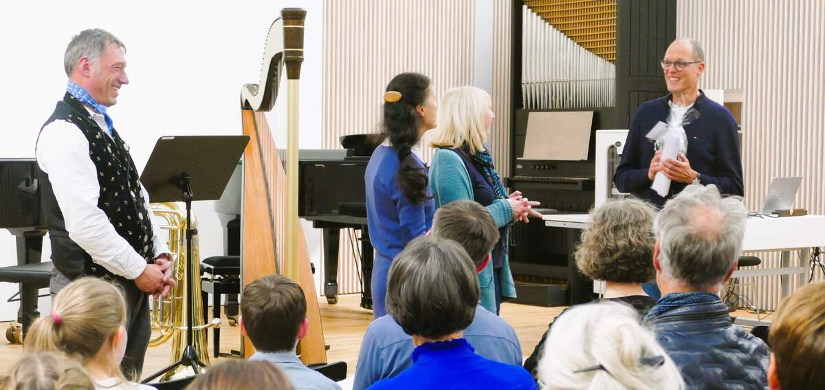 Beim ersten Vorspielabend des neuen Schuljahrs erklangen im Musiksaal des Gabrieli-Gymnasiums mannigfaltige Töne - von den hohen bis zu den ganz tiefen. Schülerinnen und Schüler von der 5. bis 13. Jahrgangsstufe spielten Modernes wie Klassisches, neue Kollegen stellten sich vor und andere wurden in den wohlverdienten Ruhestand verabschiedet - mit ganz tiefen Klängen!