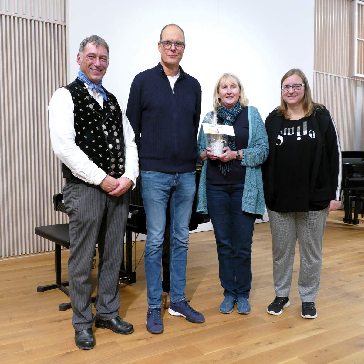 Nach 37 Jahren am GG ein Abschiedsständchen für Dirk Böndl: Dominik Harrer und seine Töchter spielten das für Böndl komponierte Stück "Dirk on Dark Side", weil der frischgebackene Ruheständler nun Tuba lernt und die Bässe in der Musik scherzhaft als die dunkle Seite der Macht bezeichnet werden.