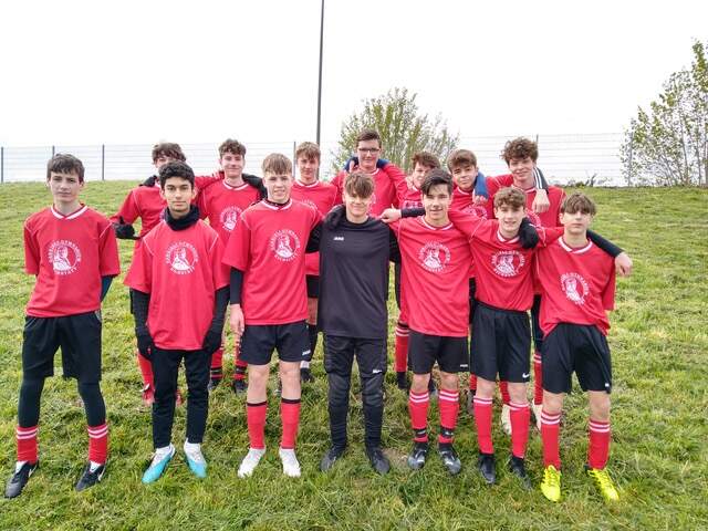 Das ältere GG-Team (rote Trikots) trat Mitte April in der Wettkampfklasse II (Jahrgänge 2008 – 2010) bei winterlichen Temperaturen zum Kreisfinale auf dem Kunstrasenplatz des TSV Gaimersheim an. Bereits nach der ersten Halbzeit des ersten Spiels gegen den späteren Turniersieger vom Gymnasium Gaimersheim lag das GG-Team deutlich mit 0:5 zurück. In der zweiten Hälfte wurden die Abläufe im Team jedoch besser, so dass keine weiteren Tore fielen. Auch gegen das Gymnasium Beilngries konnte eine Halbzeit ausgeglichen bestritten werden, jedoch fielen in der zweiten Hälfte zwei Treffer nach einer Unaufmerksamkeit in der Abwehr sowie einem unhaltbaren direkten Freistoß von der Strafraumkante, so dass sich die GG-Jungen mit 0:2 geschlagen geben mussten. Das dritte Spiel endete ebenfalls deutlich: 0:3 gegen die Realschule Rebdorf. Insgesamt waren also in drei Spielen drei klare und verdiente Niederlagen zu verzeichnen, was den vierten und letzten Platz bedeutete. Man merkte der Mannschaft des GG an, dass sie in dieser Zusammensetzung noch nie zusammengespielt hatte und im Vergleich zu den Gegnern einige deutlich jüngere Spieler im Team hatte. Zudem waren auch einige Ausfälle zu verkraften. Positiv anzumerken war der gute Zusammenhalt und der große Einsatz unserer Spieler sowie der sportlich faire Wettkampf in allen Turnierspielen.