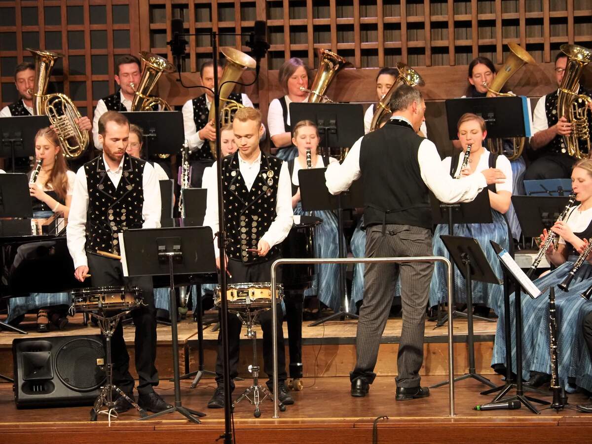 Nach einer Pause präsentierte sich die Blaskapelle Möckenlohe mit zahlreichen Solisten, bevor beim Abschlussstück beide Ensembles gemeinsam spielten.