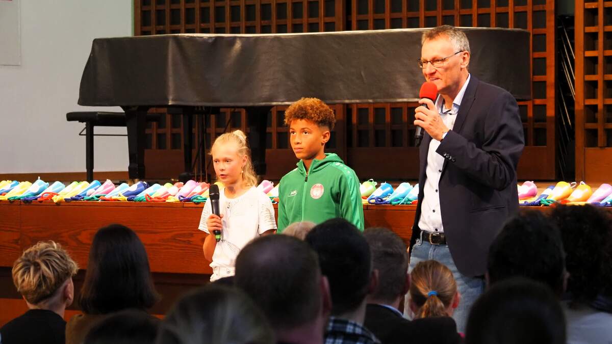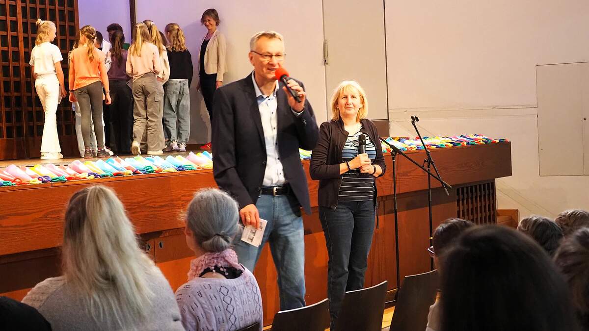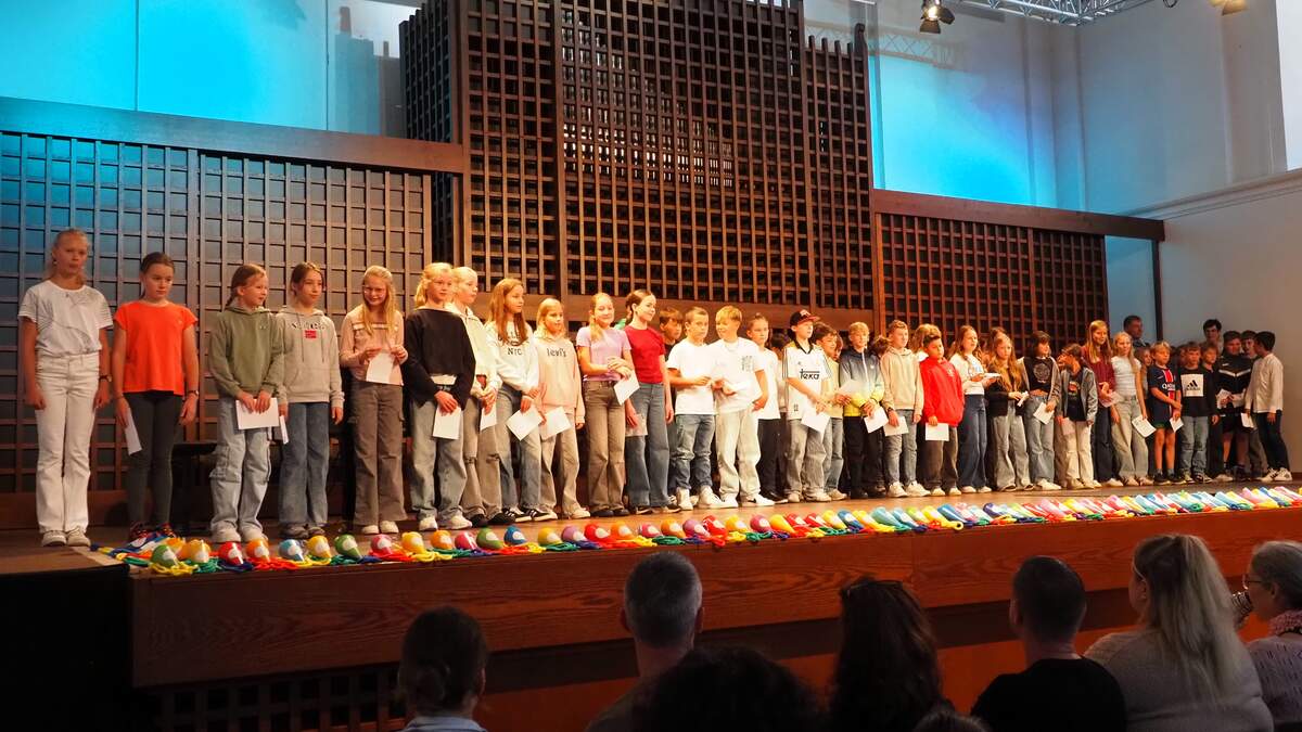 Mit Schultüte und Springseil ausgestattet starteten die 5a, 5b, 5c, 5d und 5e aufgeregt, aber gespannt und voller Vorfreude mit ihren Klassenleitern ihre Gymnasialzeit - im Gepäck die besten Wünsche der Schulleitung, des Kollegiums, der Elternvertretung sowie ihrer Mitschülerinnen und Mitschüler der 6. Jahrgangsstufe, die sie mit einem Lied empfingen.