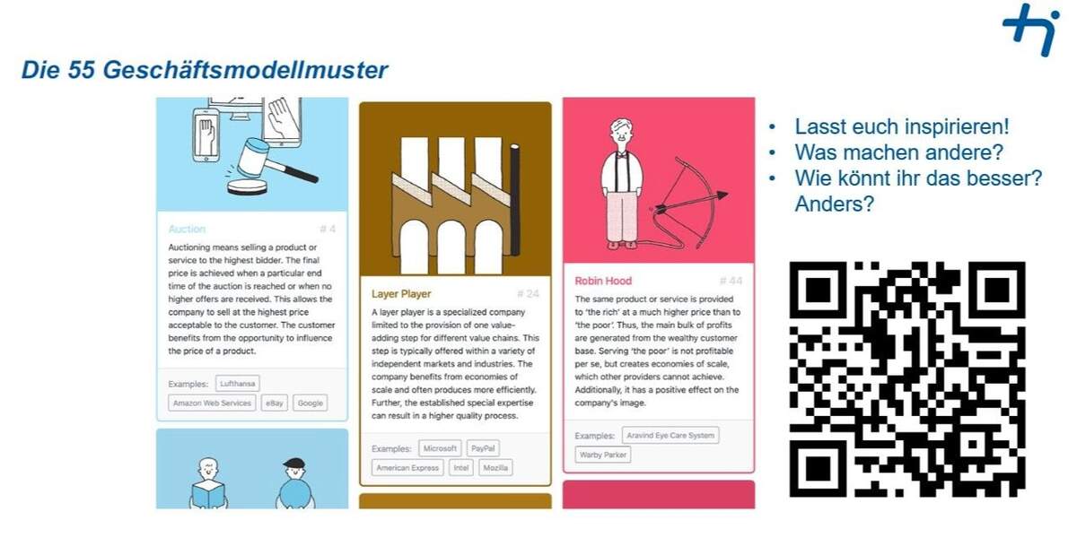 Auf Einladung von Herrn Adlkofer stellte Frau Markl Techniken zum Entwickeln und Konkretisieren von Ideen bis hin zum Businessmodell vor. Der Fokus lag hierbei auf der Analyse bereits bestehender Geschäftsmodelle und der Diskussion, wie diese Modelle innoviert werden können. Damit haben die Schülerinnen und Schüler nun ein Verständnis von den Mustern eines Business-Modells und wissen, wo sie sich inspirieren lassen können.