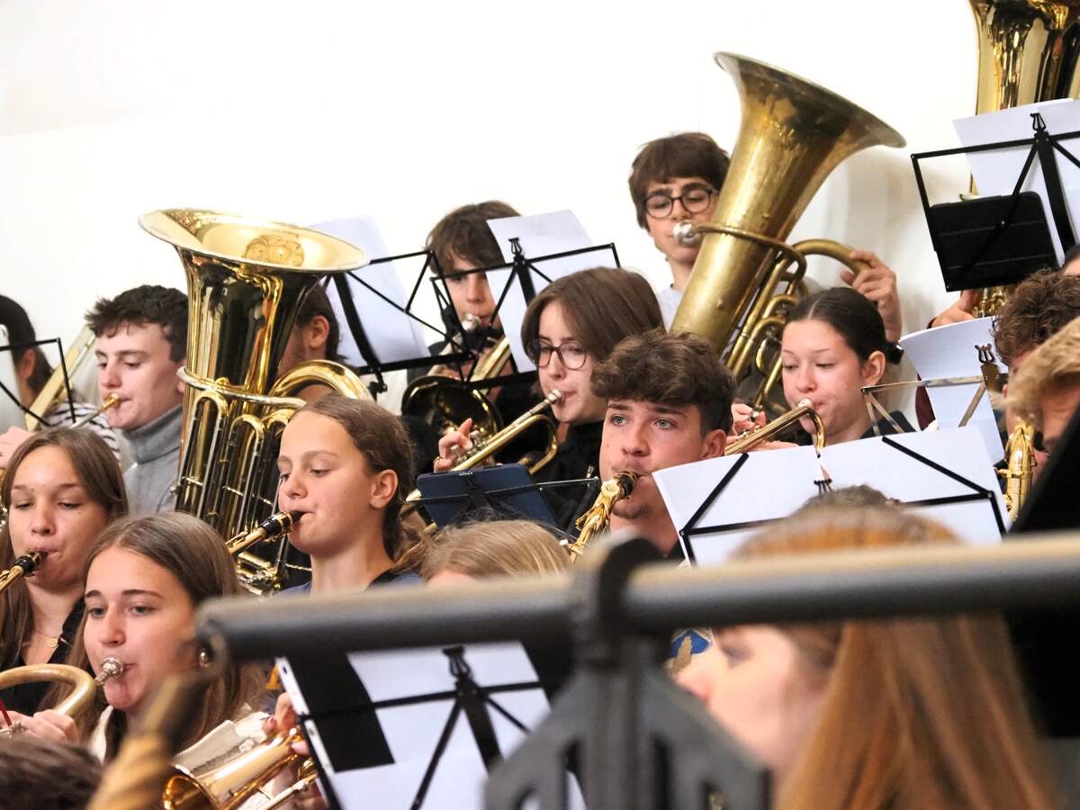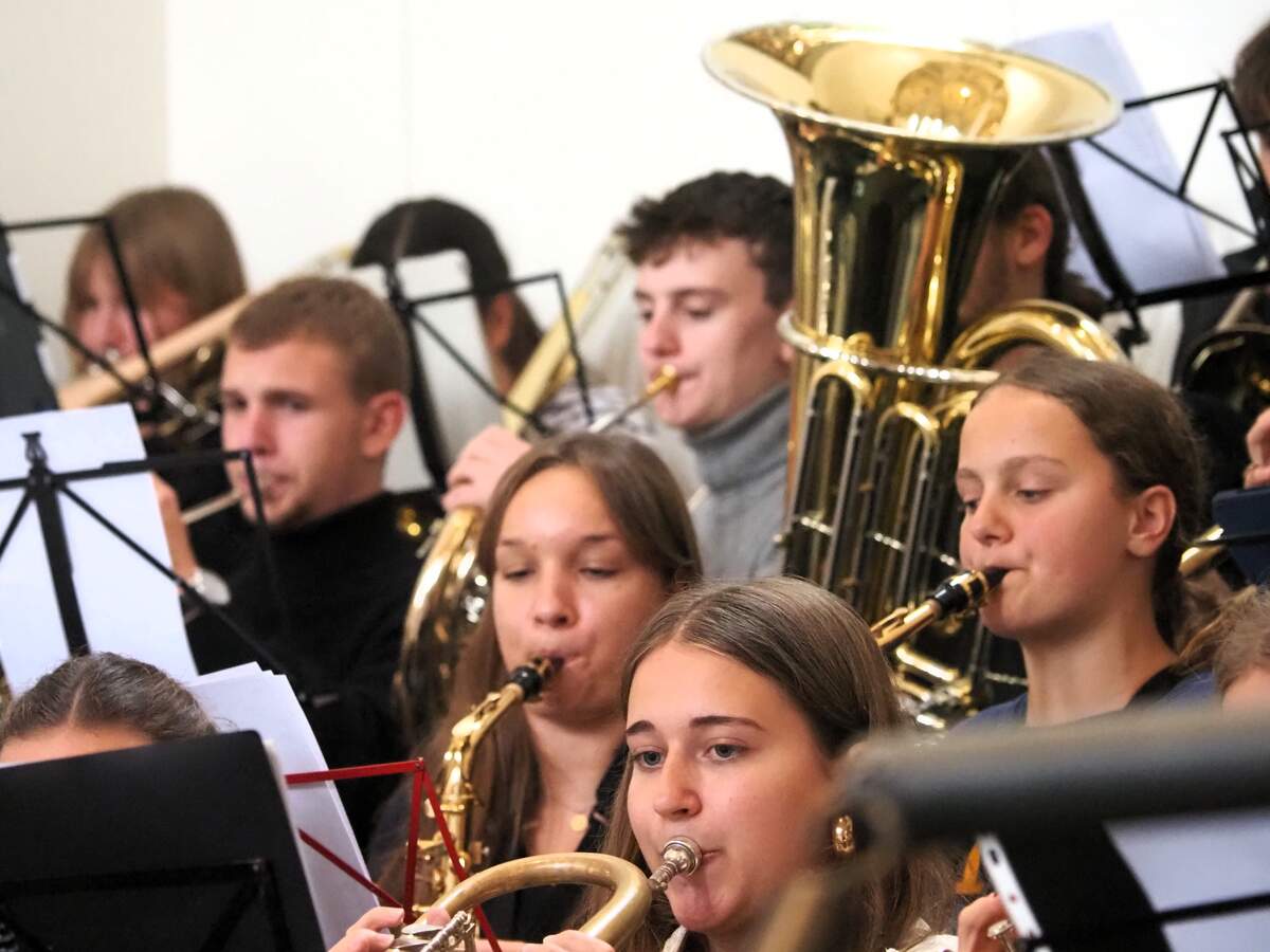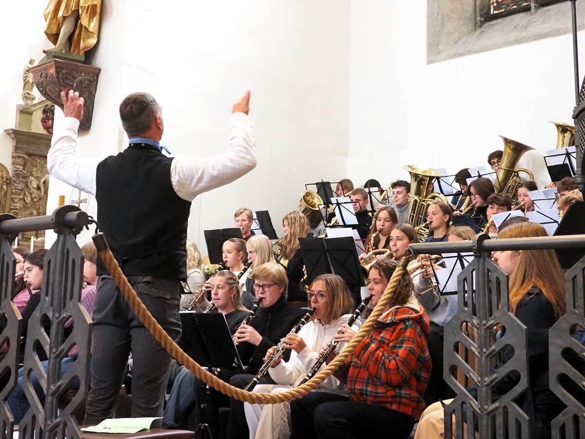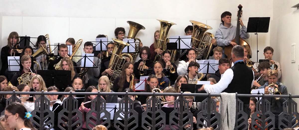 Die musikalische Gestaltung des Gottesdienstes übernahmen das Sinfonische Blasorchester unter der Leitung von Dominik Harrer und die Sängerinnen Hedwig Euler, Laura und Julia Kopischke (Q13).