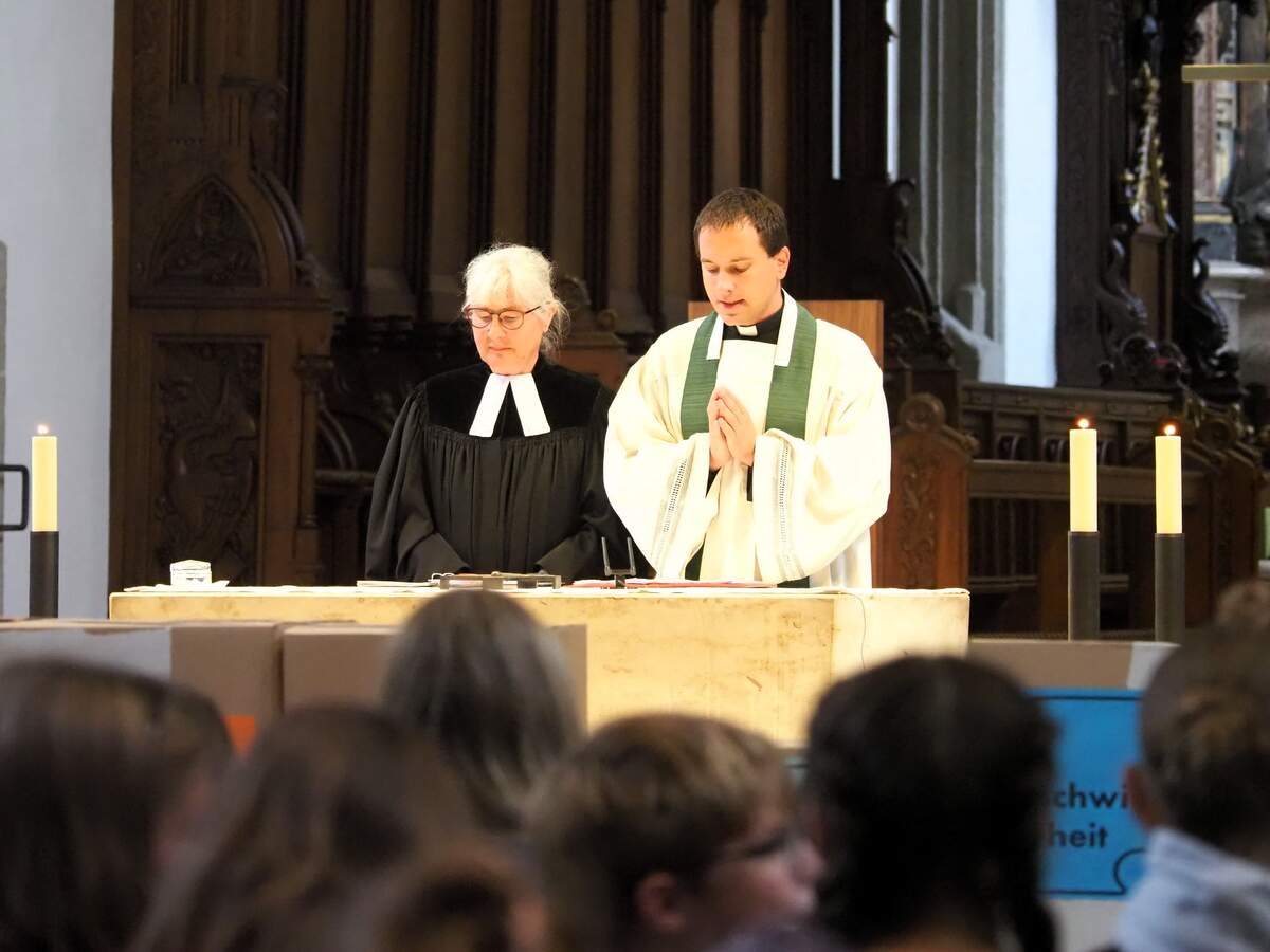 So entließen Pfarrerin Christine Venter und Diözesanjugendseelsorger Sebastian Braun mit dem Segen Gottes in das neue, für jede und jeden erfolgreiche Schuljahr, das abschließend auch Schulleiter Christof Neumayr allen Mitgliedern der Schulfamilie wünschte.