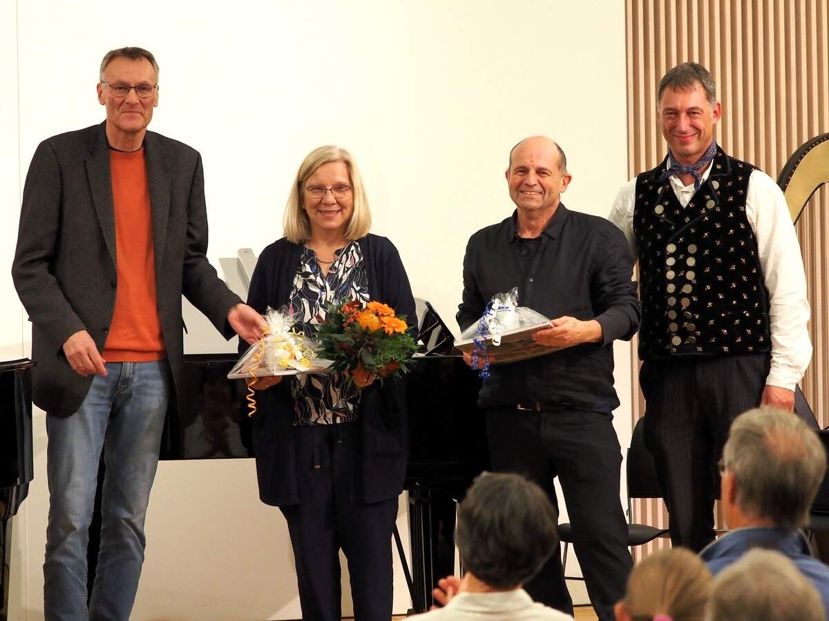 GG-Schulleiter Christof Neumayr und Musikfachschaftsleiter Dominik Harrer bedankten sich herzlich, hatte Letzterer doch während seiner eigenen Schulzeit am GG bereits von Christine Fath-Pscherer das Klavierspielen gelernt.