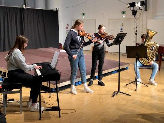 Neben der klassischen Kammermusik, wie etwa ein Klavier-Trio oder ein Streichquintett, konnten auch eine Rockband, ein Solo-Chor und eine Jazz-Combo zwei Tage lang ausgiebig in die Welt der Musik abtauchen! Am Ende des zweiten Tages spielten sich die Gruppen gegenseitig vor, was sie in den beiden Tagen gelernt hatten. Betreut wurden sie von verschiedenen Musiklehrern und -lehrerinnen des Gabrieli-Gymnasiums.