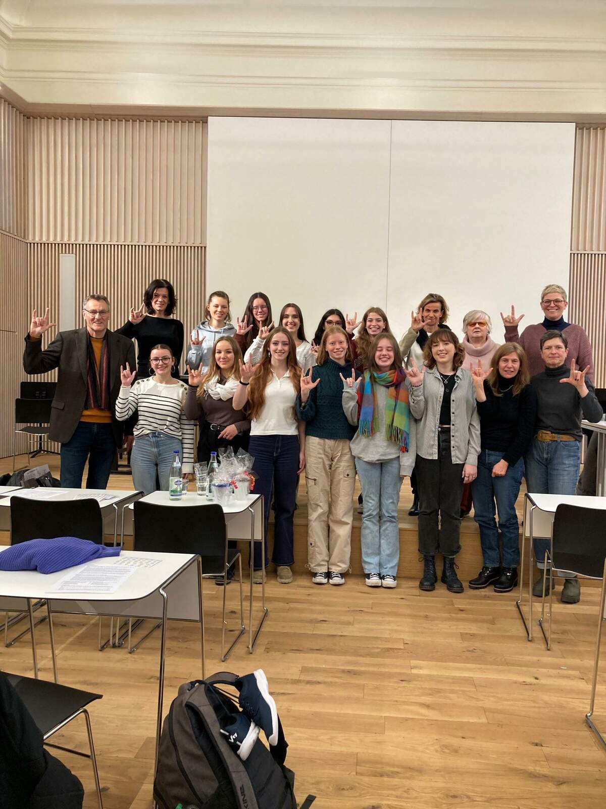 Am 30. November besuchten uns Frau Angelika Scherupp, eine Frau mit Sehbehinderung, und Frau Regine Schindler, eine Mitarbeiterin der Servicestelle für Hörgeschädigte, sowie deren Kollegin Frau Birgit Fehn, eine Frau mit Hörbehinderung, am GG und berichteten aus ihren jeweiligen Erfahrungswelten.