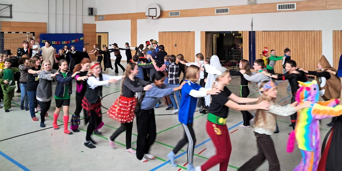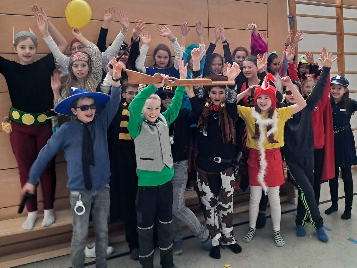 Dabei konnten sie bei Spielen wie z. B. Feuer-Wasser-Blitz und Bob-Fahren ihre Geschicklichkeit beweisen und feierten Karneval mit verschiedenen Faschingstänzen. Viele waren in fantasievollen Kostümen aufgetreten und bekamen dafür von ihren Mitschülerinnen und Mitschülern tosenden Applaus.
