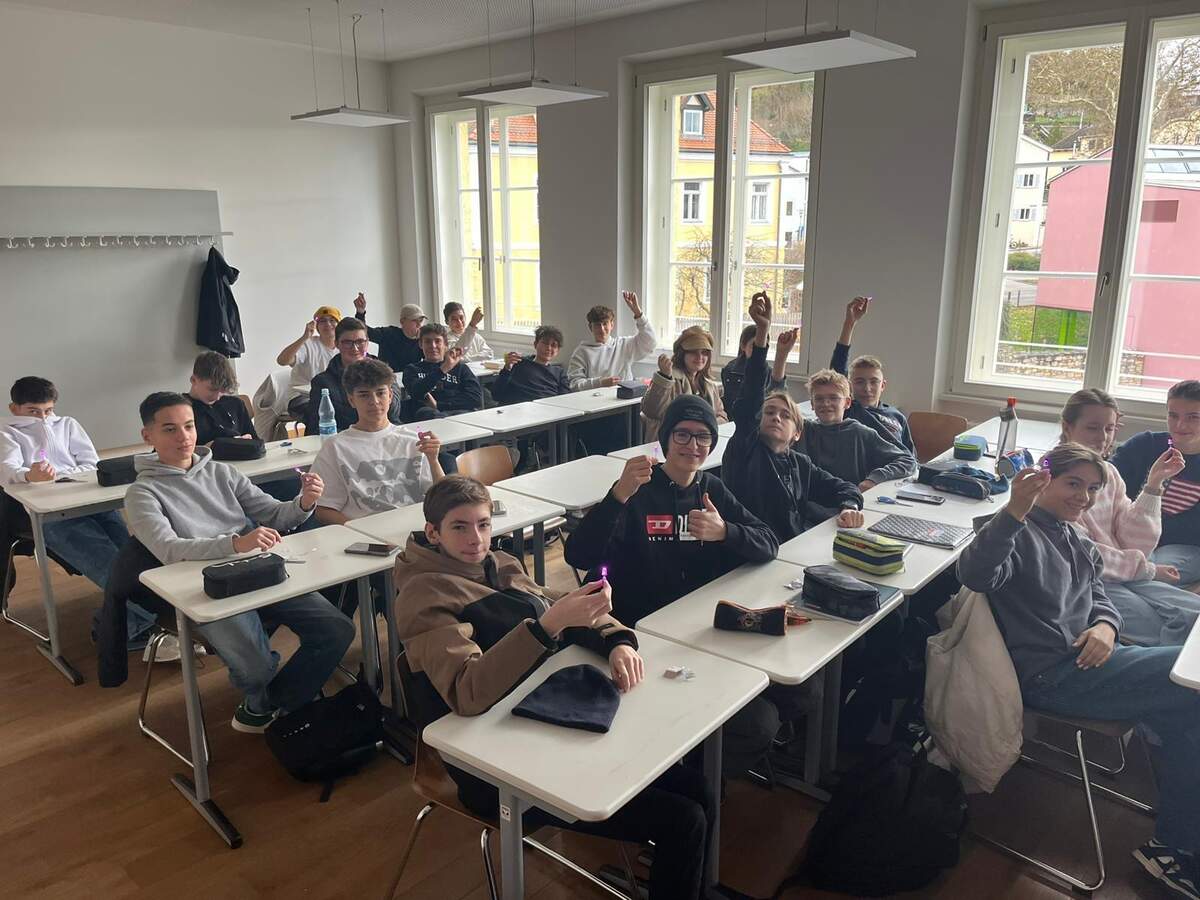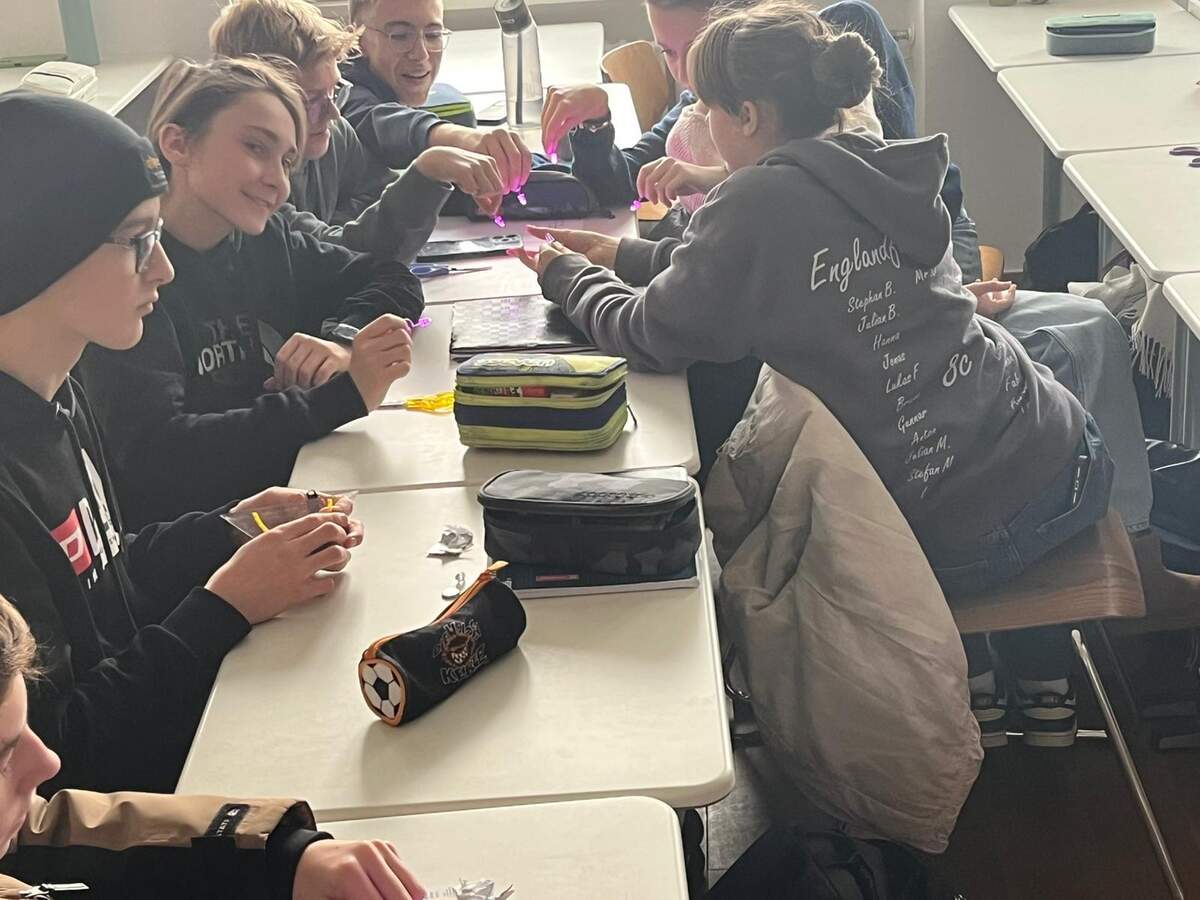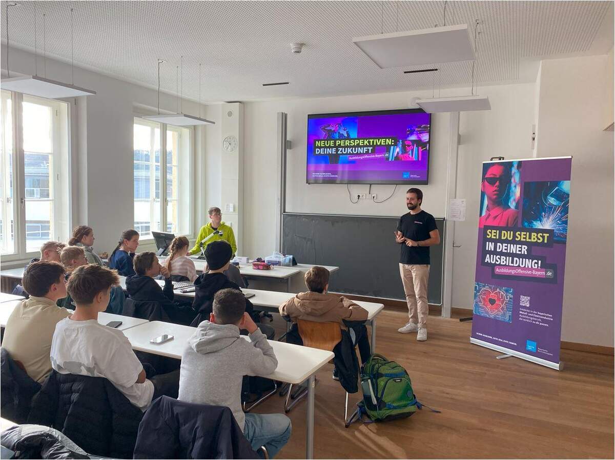 Am 28. November 2024 besuchte der Vor-Ort-Campus der „AusbildungsOffensive-Bayern“ die Klasse 9C von Herrn Murrmann und Herrn Regensburger. Hier erhielten die Schüler in einer interaktiven Info-Veranstaltung interessante Einblicke in verschiedene Berufsfelder und lernten entsprechende Berufswege kennen. Highlight war das selbstständige Bauen von LED-„Throwies“ (s. Fotos).
