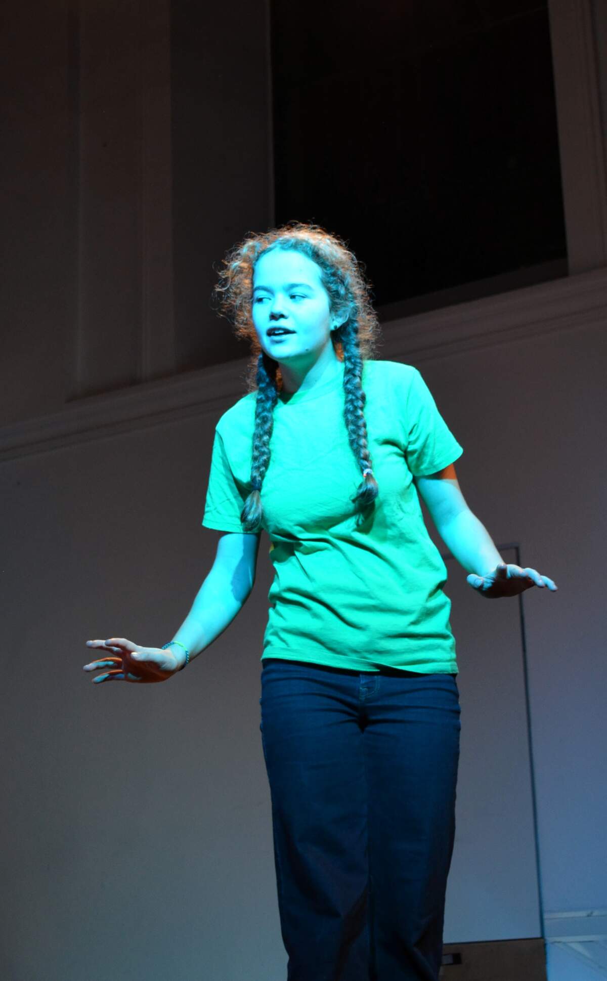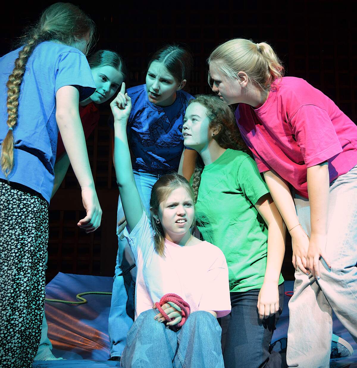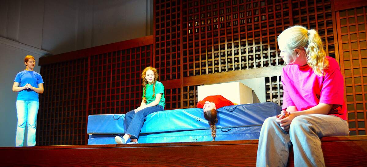 Die Aufführung des Unter- und Mittelstufentheaters des Gabrieli-Gymnasiums war ein voller Erfolg: Die sechs Schauspielerinnen der siebten bis neunten Jahrgangsstufe nahmen mit ihrem Spiel das Publikum mit und bezogen es auch aktiv ein, sodass am Ende alle zusammen mit den Akteurinnen auf der großen Bühne der Aula feierten.