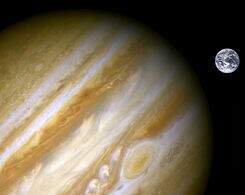 Jupiter ist der größte und schwerste der Planeten sowie meist dritthellstes Objekt des Nachthimmels. Erforscht wurde er nach Erfindung des Teleskops. Simon Marius aus Gunzenhausen entdeckte 1610 nur einen Tag nach Galilei die vier größten Monde des Riesenplaneten, die Ole Römer zur Bestimmung der Lichtgeschwindigkeit nutzte.