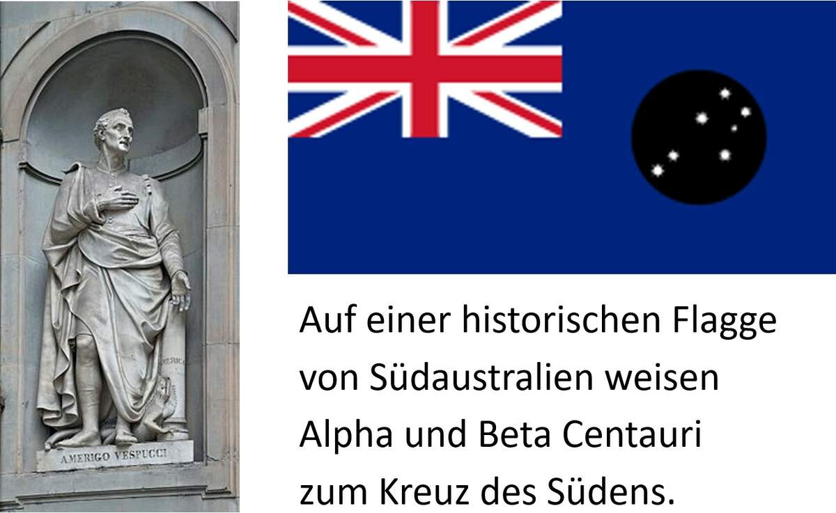 Americo Vespucci (1454–1512) kartierte die zwei hellsten Sterne des Kentaur und das Kreuz des Südens. Um den 1915 von Innes entdeckten Proxima Centauri läuft, wie man seit 2016 weiß, ein extrasolarer Planet.