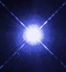 Unter den Fixsternen besitzt Sirius die größte scheinbare Helligkeit. Tatsächlich handelt es sich um ein Doppelsternsystem mit der Hauptkomponente Sirius A (doppelte Sonnenmasse) und einem nur teleskopisch sichtbaren, höchst dichten Weißen Zwerg (Sirius B). Beide Sterne entstanden vor etwa 240 Millionen Jahren, entwickelten sich aber wegen ihrer Massenunterschiede verschieden schnell.